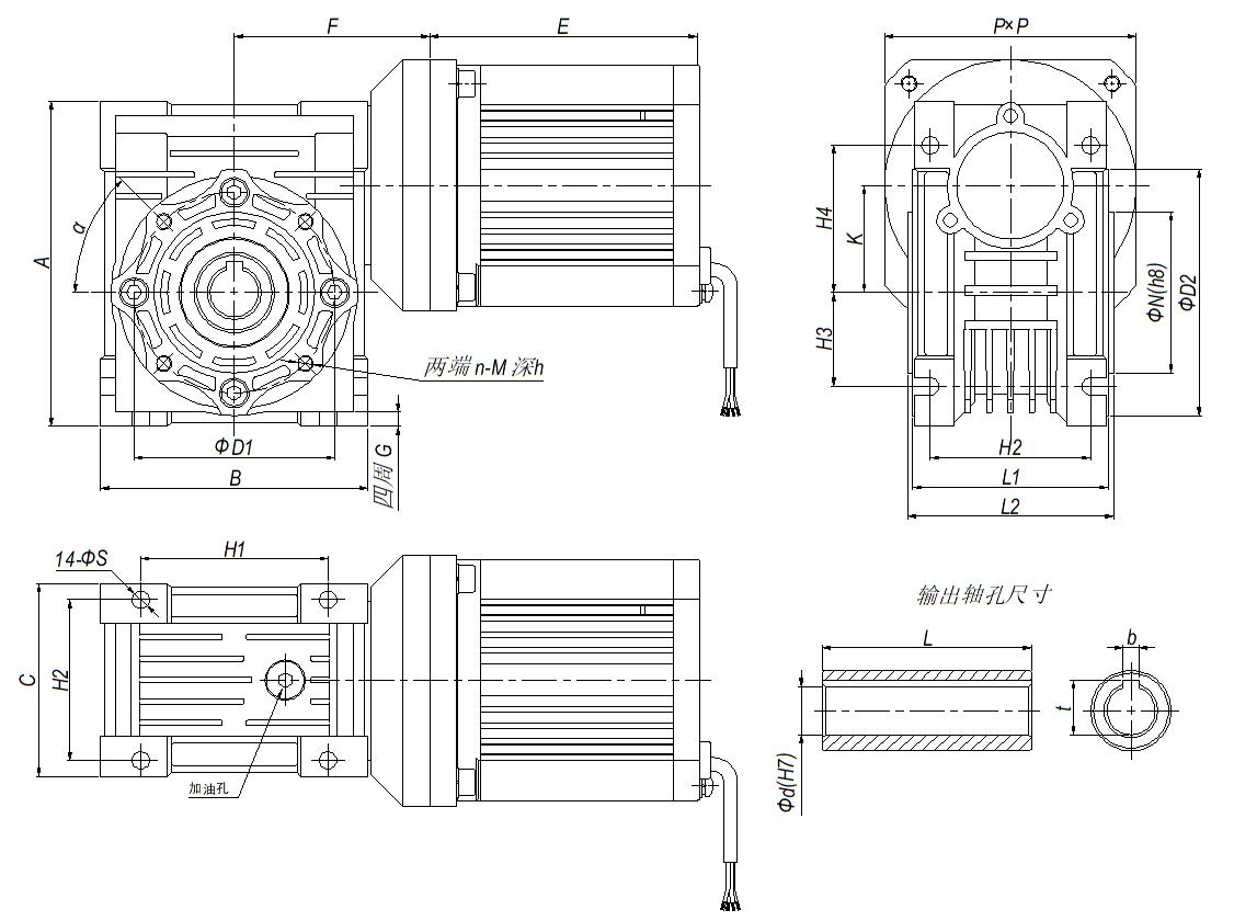 型號 減速箱代號 A B C D D1 D2 E F G H1 H2 H3 H4